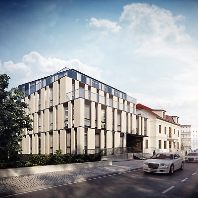 jest jednoznacznie nowoczesna, nawiązuje jednak do starszej kamienicy proporcjami i horyzontalnymi podziałami fasady (czwarta kondygnacja została zdecydowanie cofnięta, dzięki czemu od strony ulicy powstał duży taras).