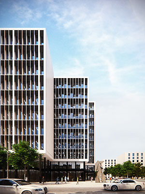 and can aspire to be Investor’s flagship. Therefore, two buildings with extended plans were designed. Their gables have three offsets of varied depth. This trick makes the three office blocks look similar. But their similarity has nothing
