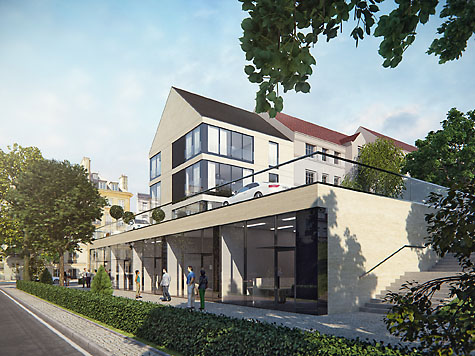 On the ground floor there are retail outlets and on three upper floors - spacious, fully illuminated apartments with large panoramic windows.