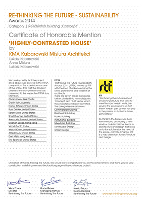 wyróżnienie honorowe w kategorii Residential Building Concept